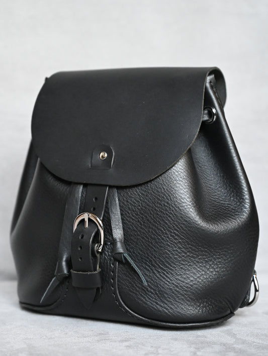 Handmade Black Leather Mini Backpack