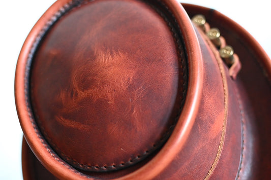 A true American original, the cowboy hat was born on the range and built for long days under the sun. First worn by ranchers and cattlemen in the 1800s, it became a symbol of independence and grit. Ours is handcrafted from Horween’s Dublin leather — a rich, waxed veg-tan known for its strength, depth, and character. Designed with a modern edge for a more refined, stylish presentation, it’s heritage reimagined for today.