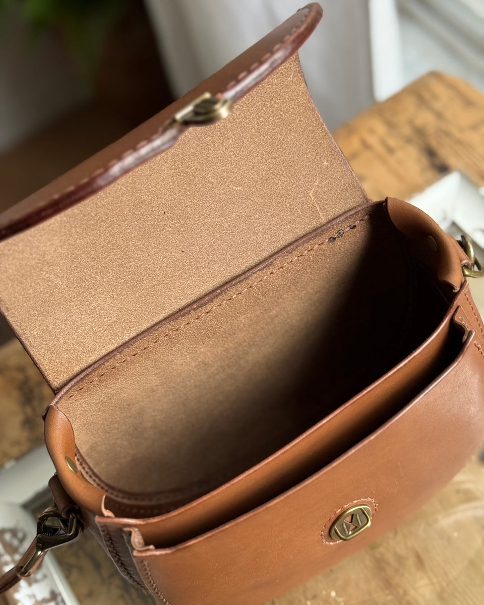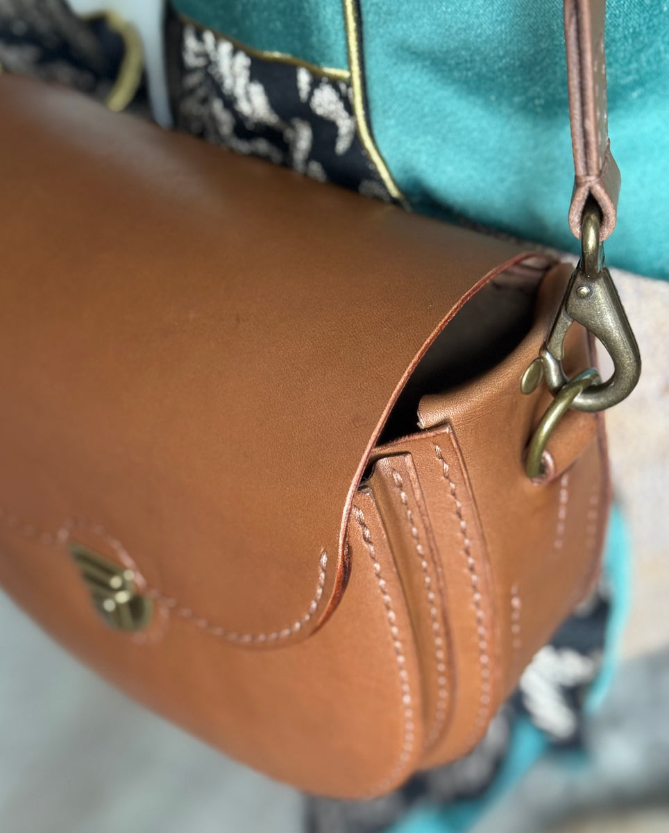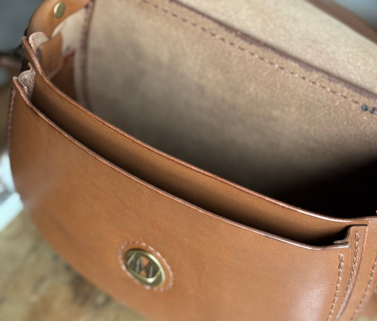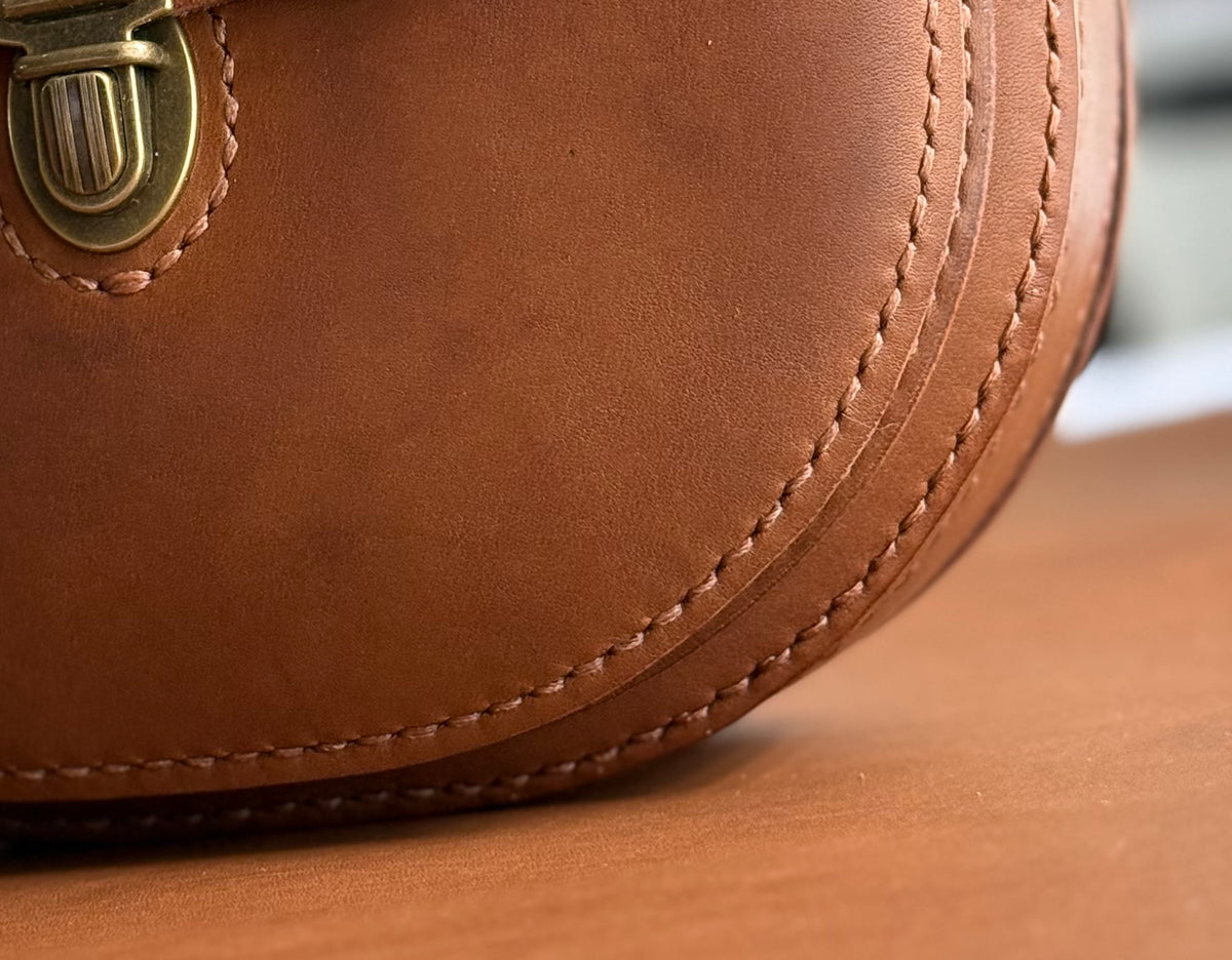 This handmade piece features two organized slots, an adjustable leather strap, and warm natural brass hardware. Every stitch is placed by hand for strength and longevity, with carefully finished edges that give the design a refined, polished look. Timeless and versatile, it’s the perfect companion for everyday use.