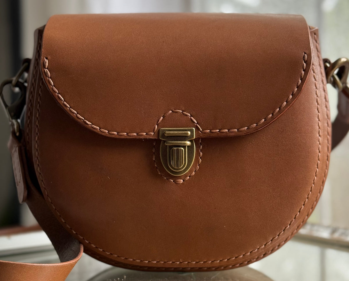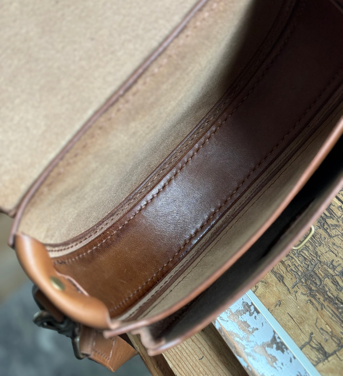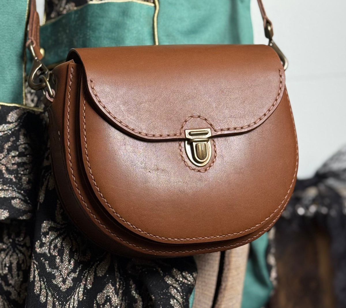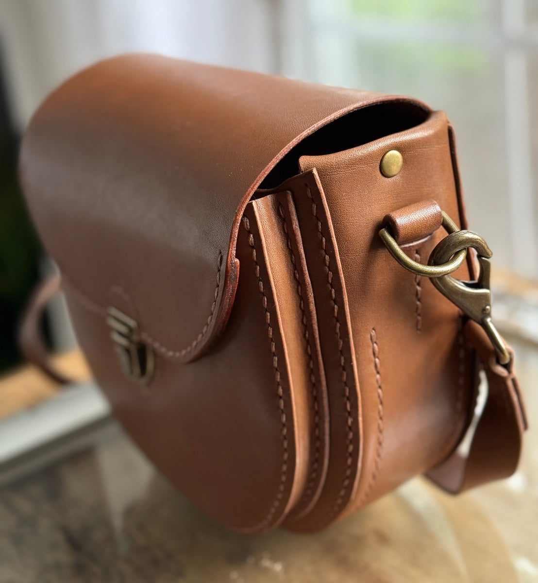 This handmade piece features two organized slots, an adjustable leather strap, and warm natural brass hardware. Every stitch is placed by hand for strength and longevity, with carefully finished edges that give the design a refined, polished look. Timeless and versatile, it’s the perfect companion for everyday use.
