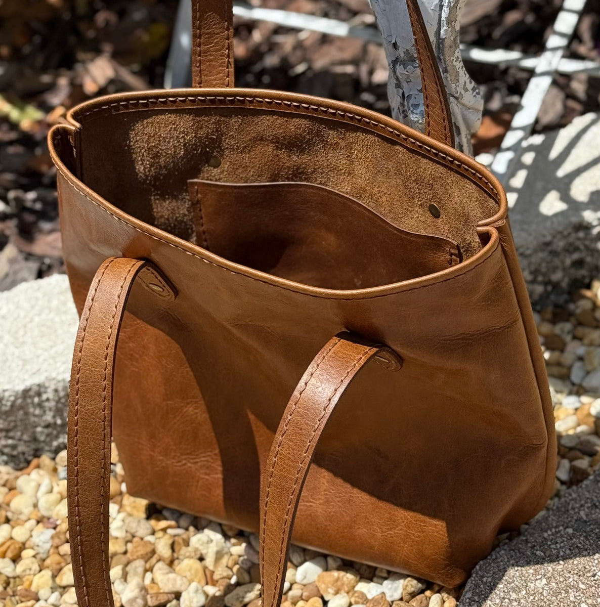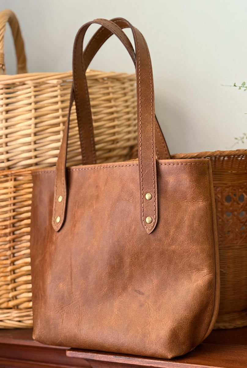 Crafted by hand and built for everyday elegance, this small tote bag is made using premium, soft aniline top grain leather sourced from Germany. Every stitch is hand-sewn with wax-protected polyester thread, color-matched to the leather for a clean, refined look.